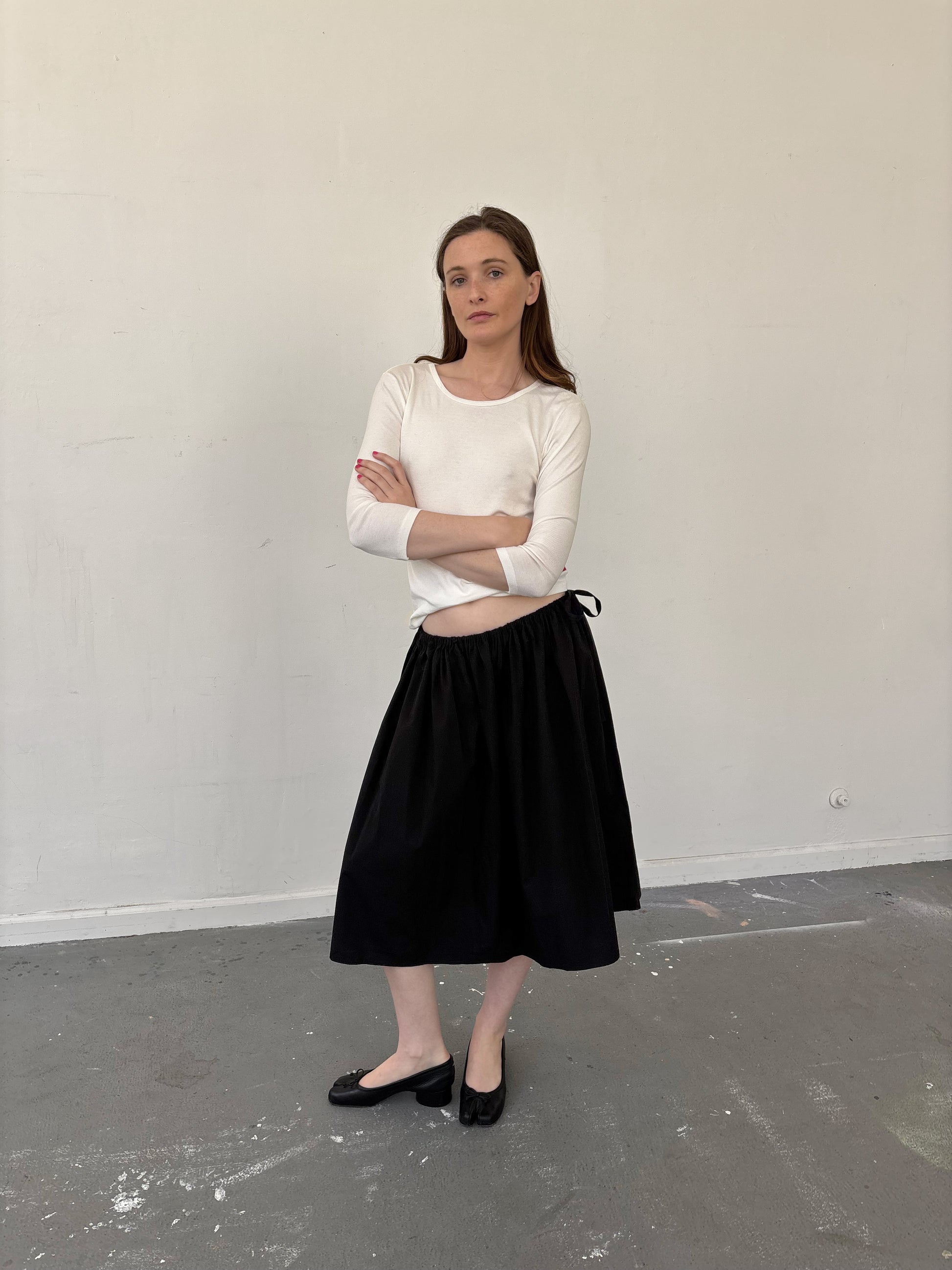 100% Cotton poplin skirt with a fully adjustable tie waist. Designed, cut and sewn in Echo Park, Los Angeles.