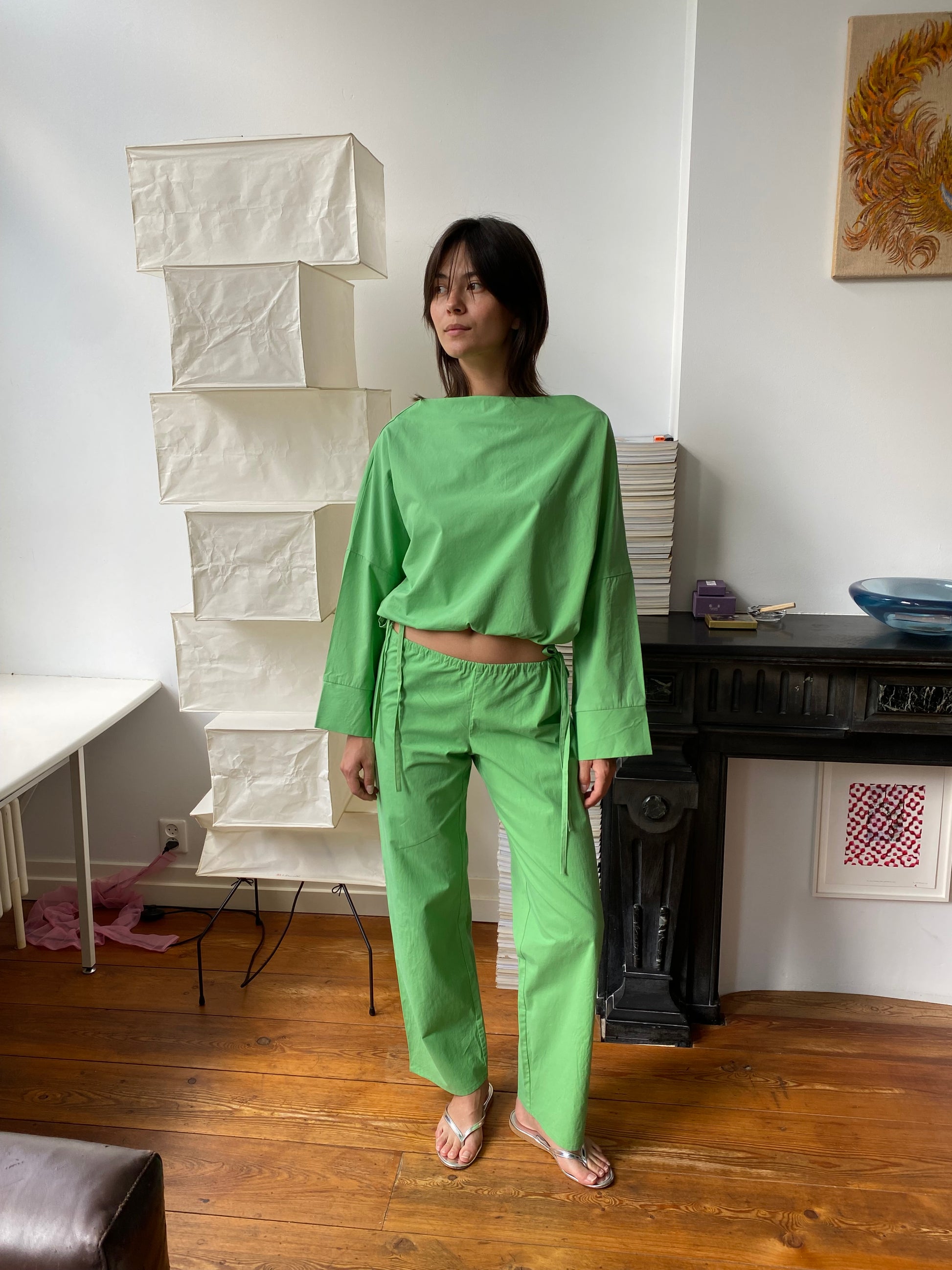 100% Cotton poplin pants with fully adjustable tie waist. Designed, cut and sewn in Los Angeles.