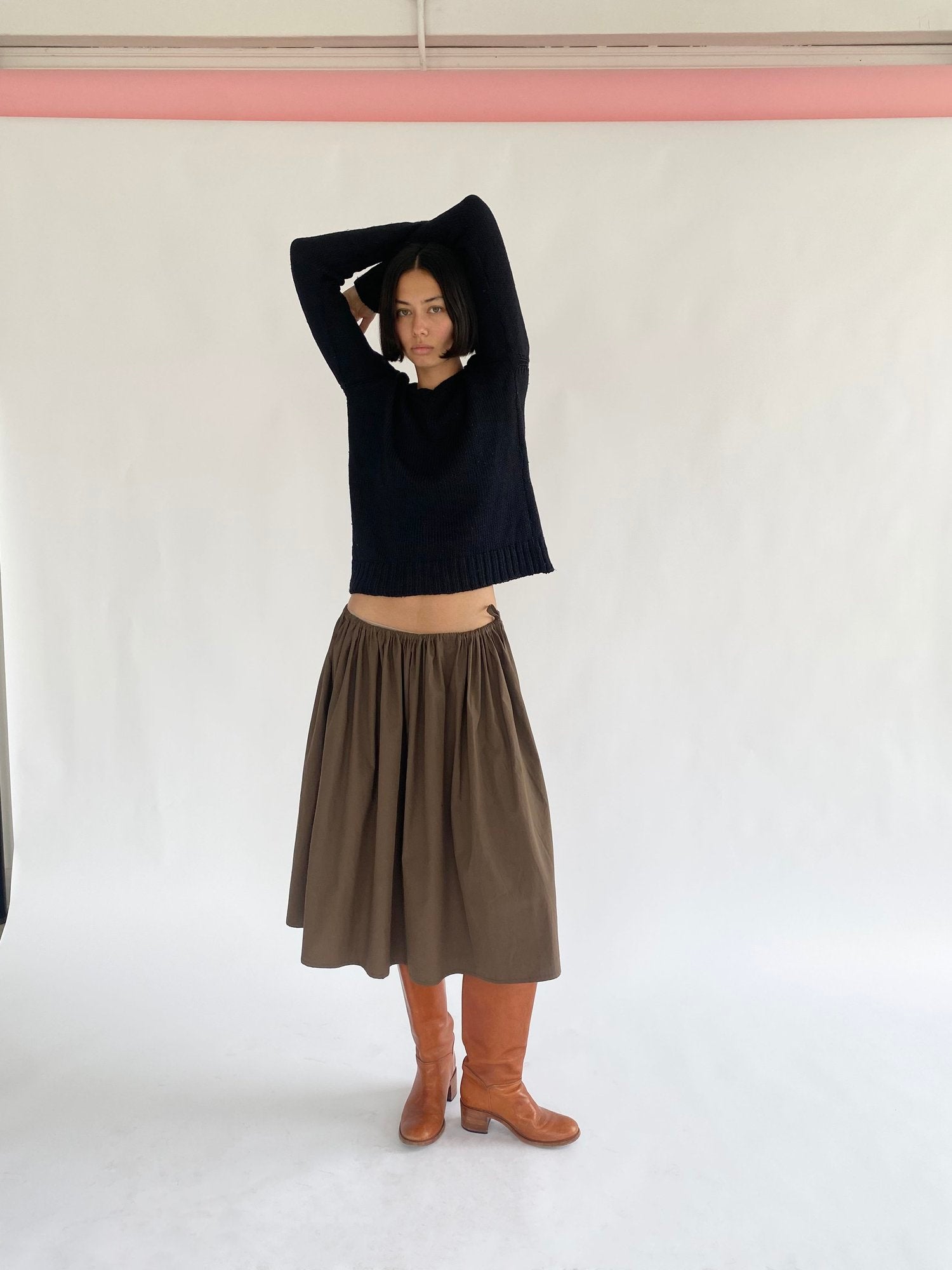 100% Cotton poplin skirt with a fully adjustable tie waist. Designed, cut and sewn in Echo Park, Los Angeles.